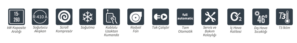 With a 100% domestic design, İmbat tropical rooftop air conditioners are available in 13 different capacities ranging from 15-260 kW and are designed for a maximum outdoor temperature of +46°C in the T3 climate zone. For larger capacities, multiples of the designated models are used. The units are monoblock and compact, featuring plug-and-play functionality with a remote control.